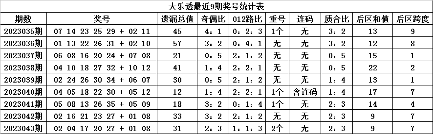 大乐透第2023044期:上期前区3胆全中,后区胆码连中,前、后区杀号全准