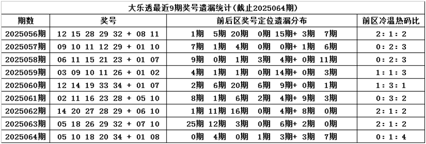 关键词一:冷温热(定义:热码:遗漏值3期内的号码,温码:遗漏值4-9之间的号码,冷码:遗漏值9以上的号码)