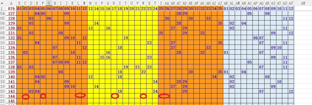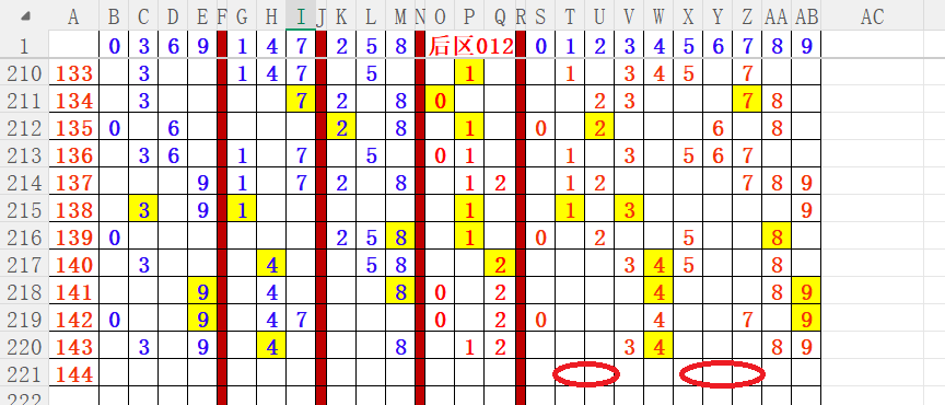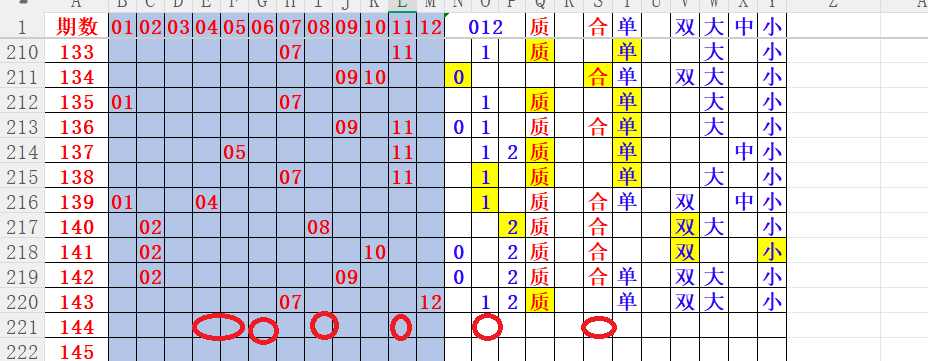 如上图4,012路分析012路,本期重点12路。重点  04 05 06 08 11