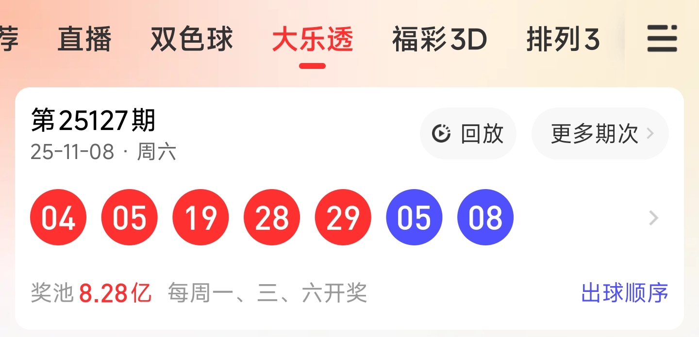 25126期大乐透文章推荐中命中519283个红球,蓝球8。红3胆命中19,蓝2胆命中8