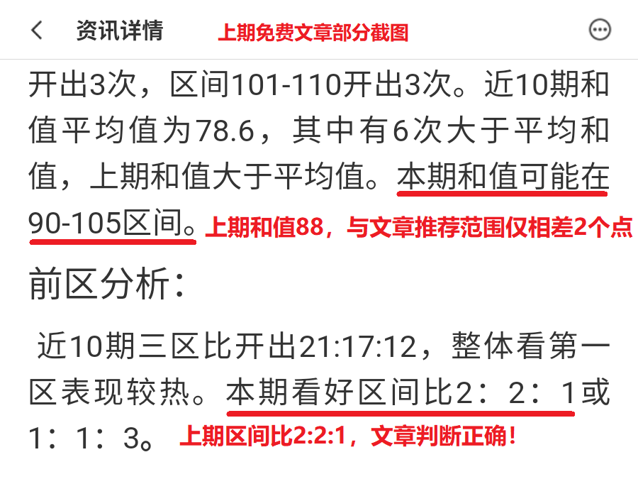 上期区间比2:2:1,文章判断正确!上期和值与文章看好范围仅相差2个点。