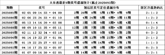 体彩大乐透第2025093期奖号为:01 07 09 16 30 + 02 05,各位号码遗漏期数分别为:1期、14期、4期、5期、37期+9期、0期,前区号码遗漏总期数为61期,012路比为2:3:0,奇偶比为3:2,没有开出重复号码。后区号码遗漏总期数为9期,和值为7,跨度为3。