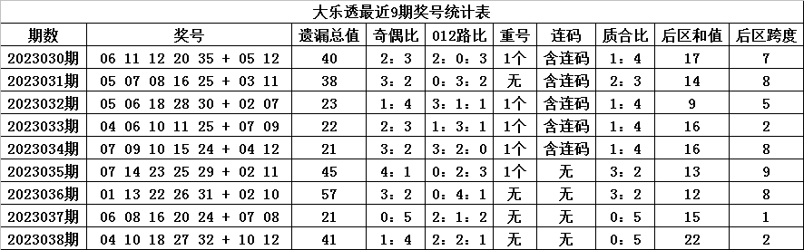 大乐透第2023039期:前区胆码连中,本期前区继续参考全合组合
