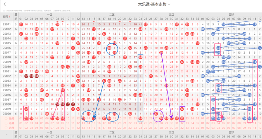 龙本龙-大乐透-第091期选号分析,上期胆码命中后区01