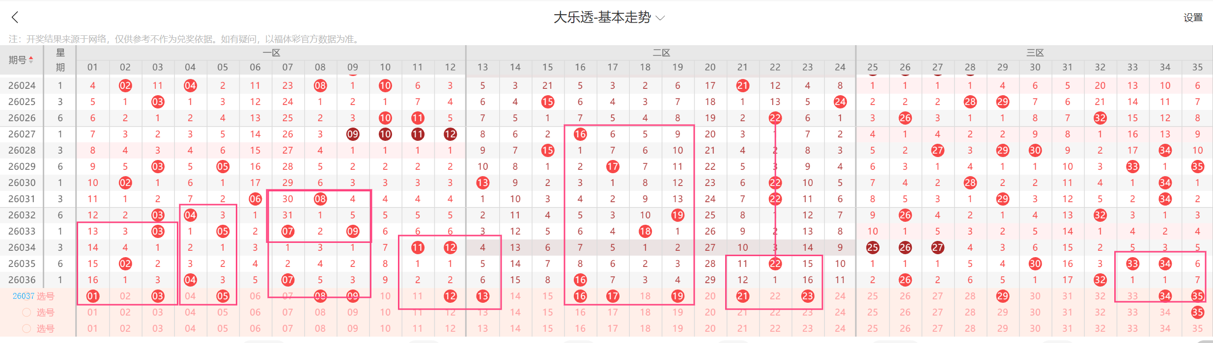 综上分析,本期超级大乐透第26037期组号和胆码推荐: