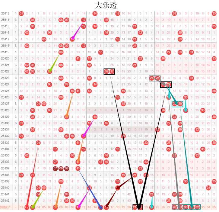 注意5个红球的组合冷温热码和值范围保持在-1~5