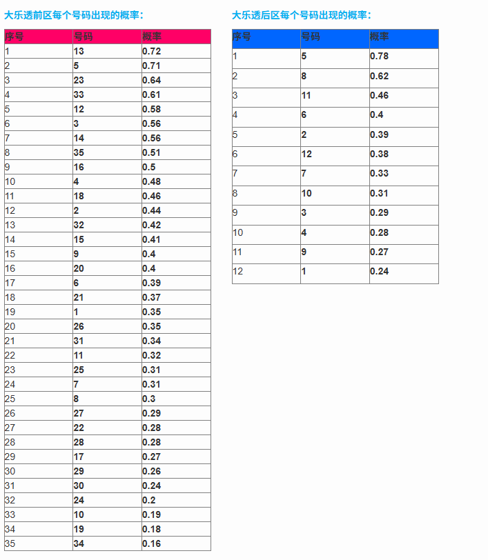 大乐透算法各类号码分布图