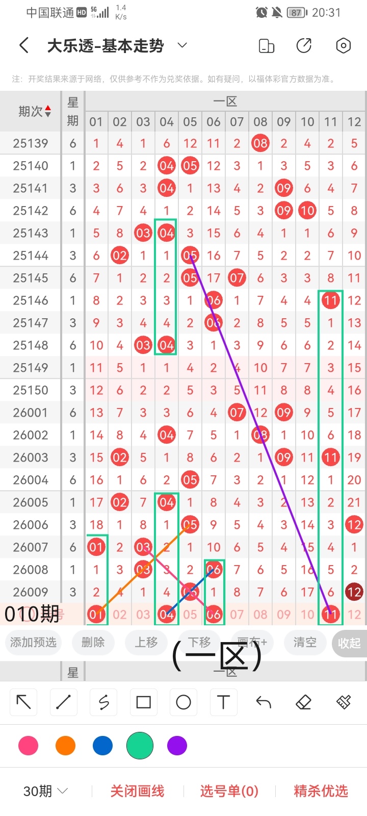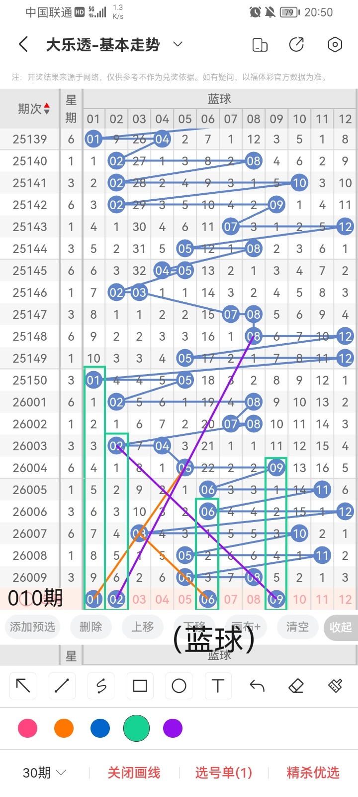 通过以上对上期的简单回顾,下面进入大乐透第2026010期(下面简称本期)的选号分析: