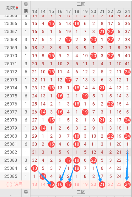 083期当前区段开出了17.20温号18热号