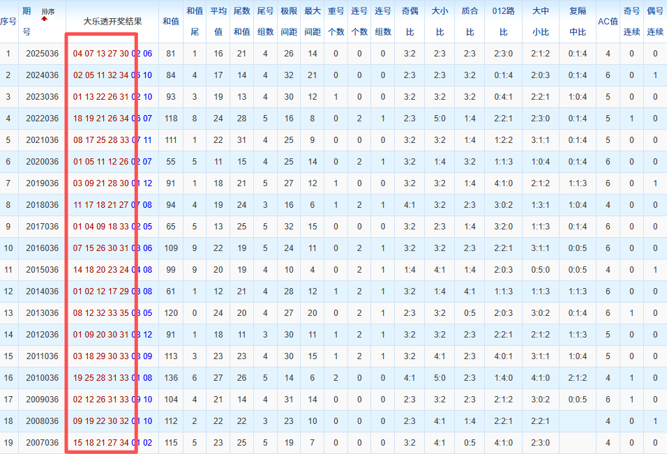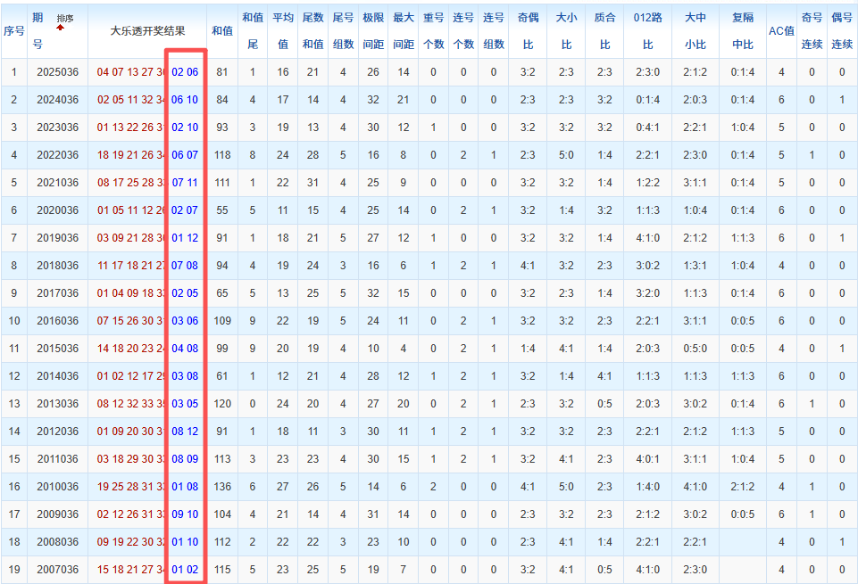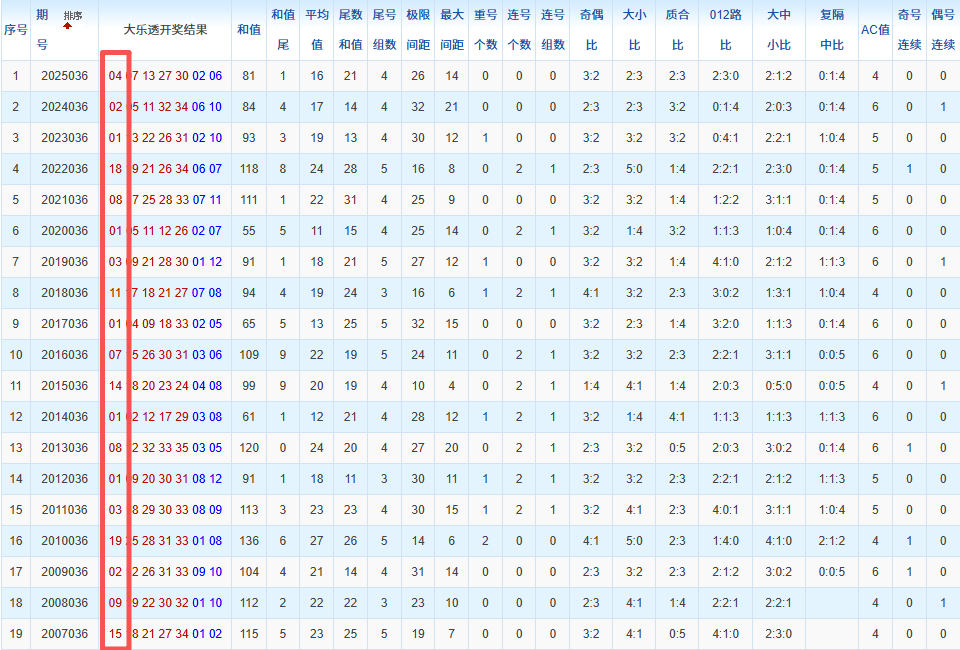 通过观察,我发现往年同期的开奖数据与本期号码之间存在显著关联。具体来说,在前区号码中,从第一位至第五位,通常会有约三个位置上的数字与往年同期相同位置的号码一致;而后区号码中,也有多期开奖结果直接包含了往年同期的数字。因此,我们可以借助往年同期各位置上的号码,作为分析本期开奖情况的重要依据。在此基础上,还可结合往年同期的其他相关条件,进行综合性的号码组合推荐。