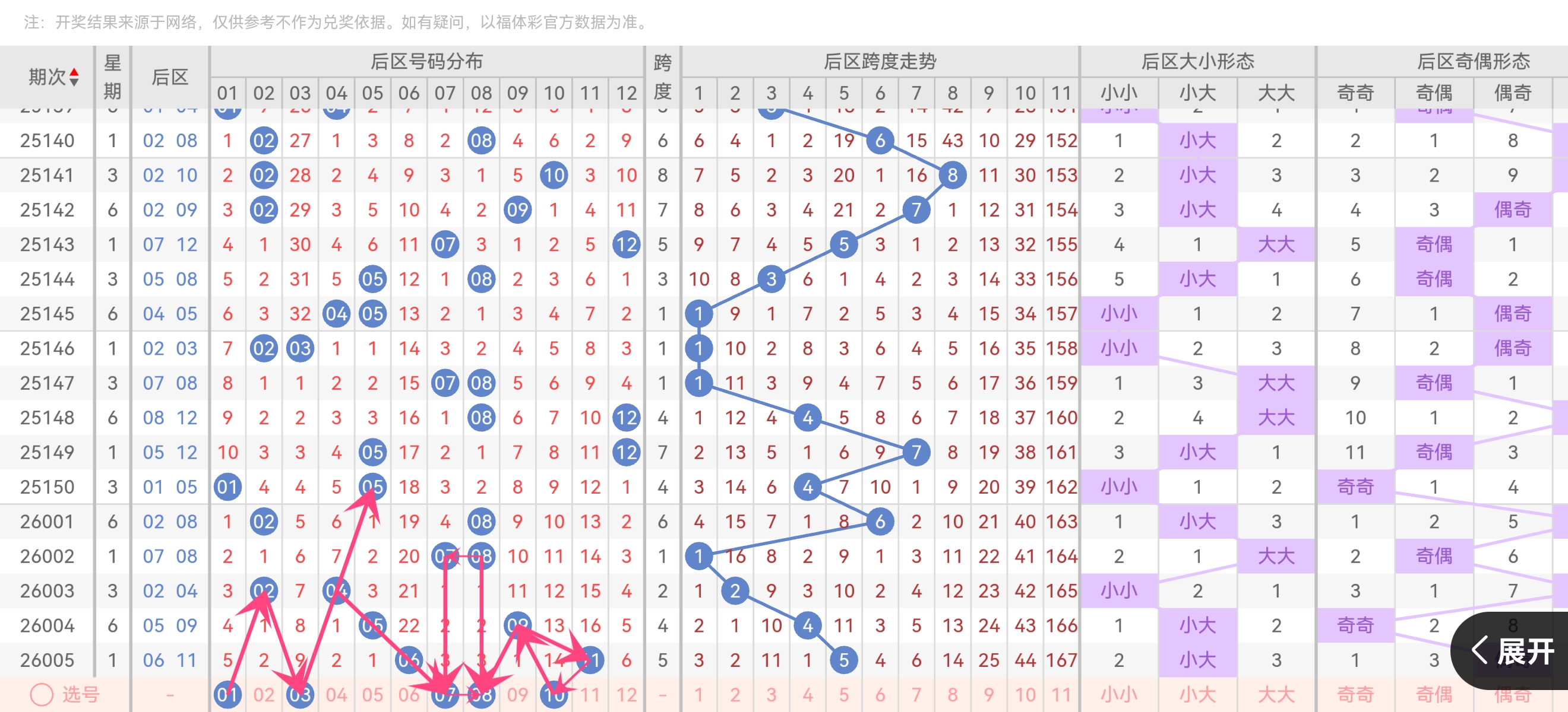 近10期后区奇偶比 7:13 (偶数强势)