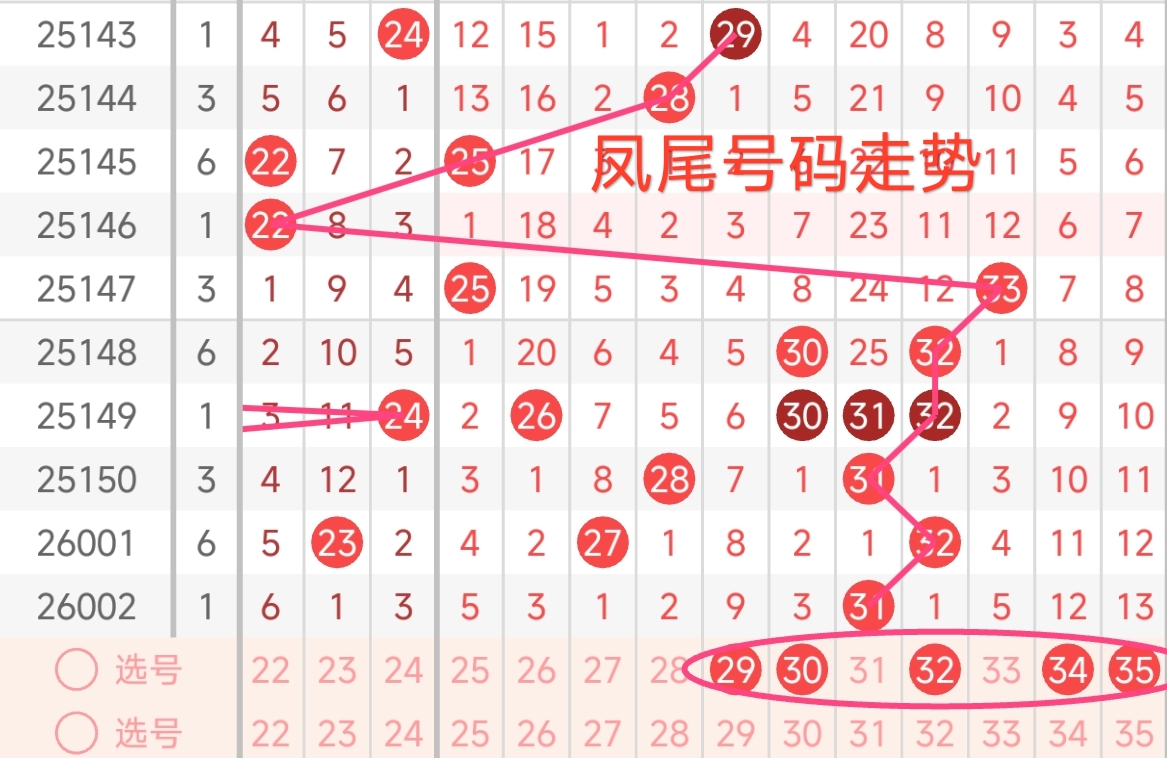红球三区推荐(25~35):上期红三区开出1枚号码,号码为31,本期红三区建议出号1-3枚,本期红三区推荐关注号29、30、32、34、35。