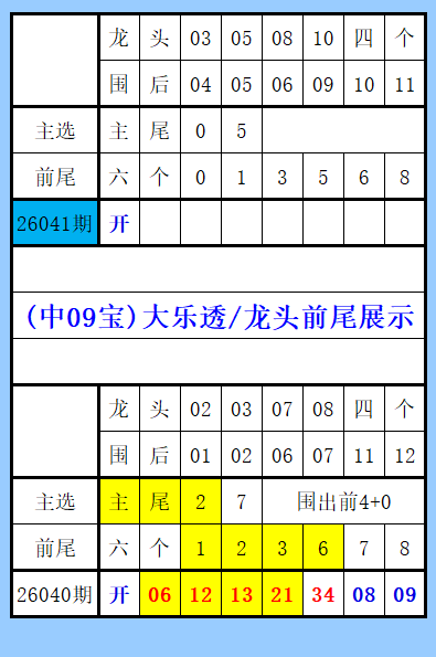 大乐透(中09宝)龙头前尾展示