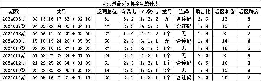 马姐大乐透第2024015期:上期前区胆码连中,杀号全准,013期中一等奖