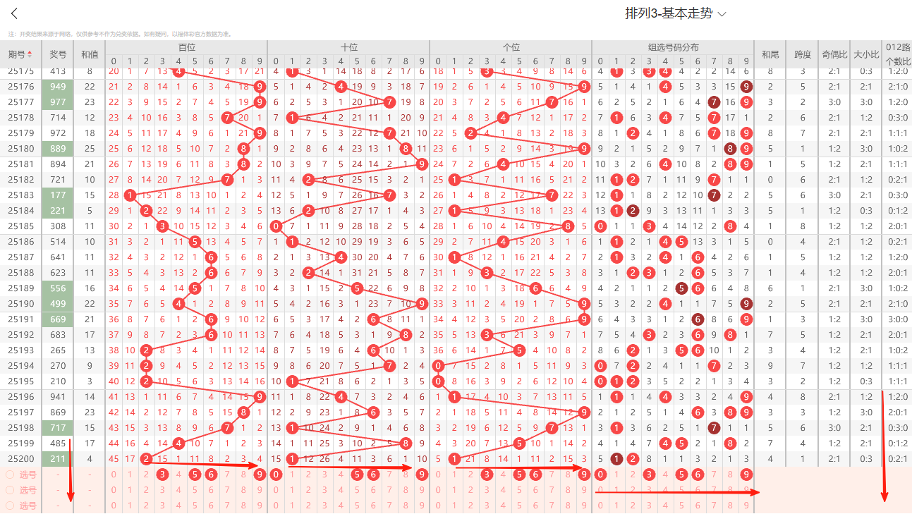 ①百位:上期开出小号偶数2号,在历史开奖记录中显示一般正常的奇偶周期平均在1~3期为普遍现象,偶数连续开出2期上期为2路号码,依据奇偶以及012路周期性规律的转变特征点即本期2路号码有开出的趋势0路号码注意预防。
