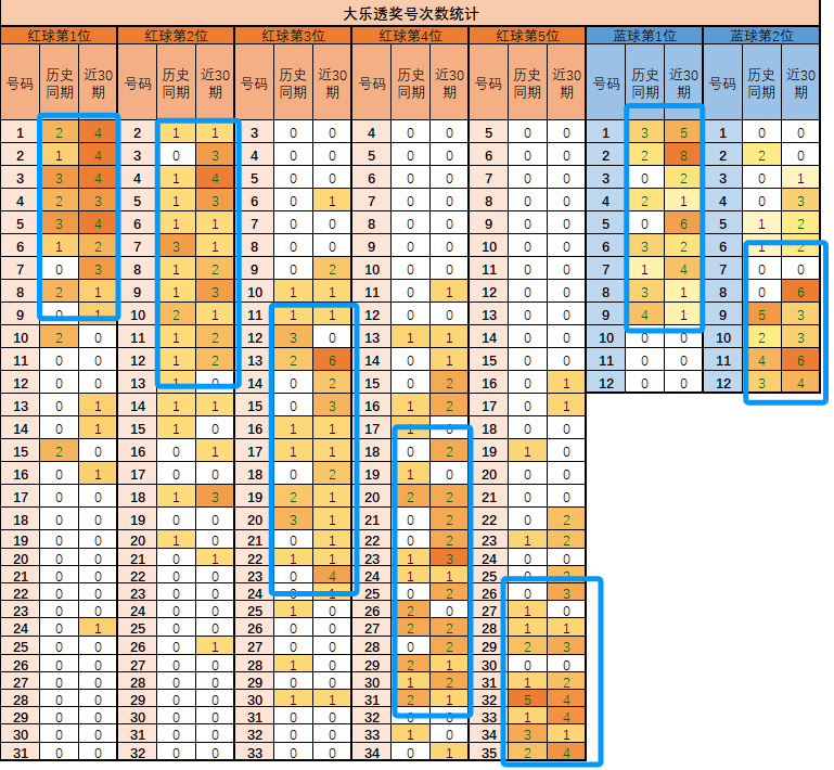 统计历史同期、近30期奖号频率,热门摸底,灵感来源