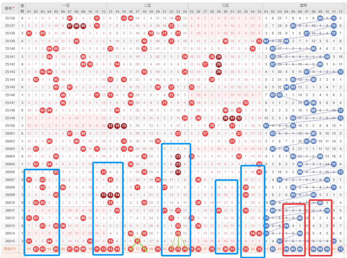 蓝球区,蓝球第一位开了奇数质数,整体上看...(其他思路留给会员文章哦)。