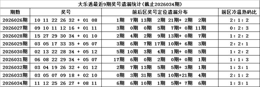 关键词一:冷温热(定义:热码:遗漏值3期内的号码,温码:遗漏值4-9之间的号码,冷码:遗漏值9以上的号码)