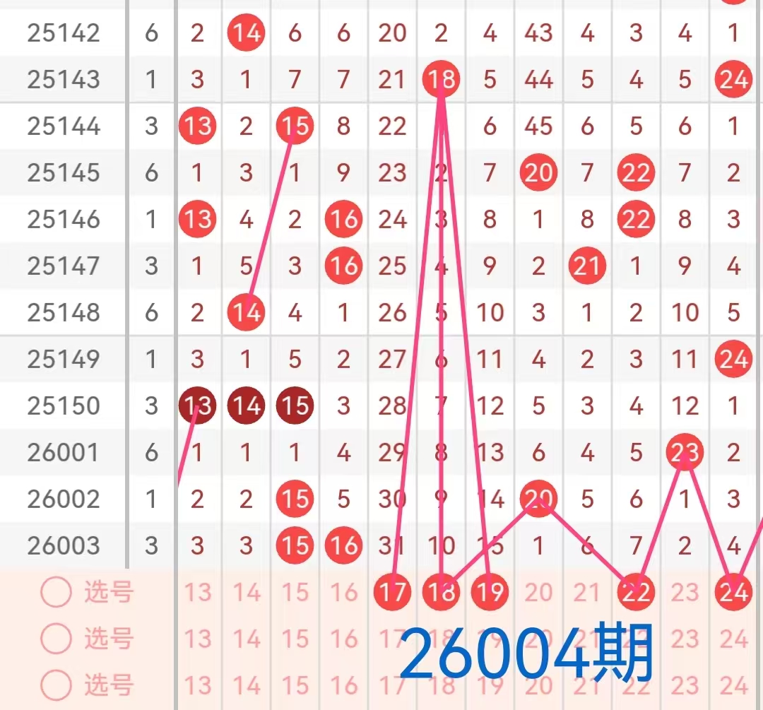 2. 二区(13-24):上期该区间开出两个号码15和16,号码15重复开出,形成重号的形式。号码16为该期的凤尾号码,在遗漏5期后开出,且与号码15形成一组二连号的形式。根据历史开奖来看,近期该区间活跃度较低,本期预计会有1-2个号码会继续开出。特别是那些遗漏次数较大的号码17、18、19和该区间内近期表现较好的号码22、24这个号码在走势上表现出一定的稳定性,且与前几期出号形成呼应,有望出现在本期开奖中。