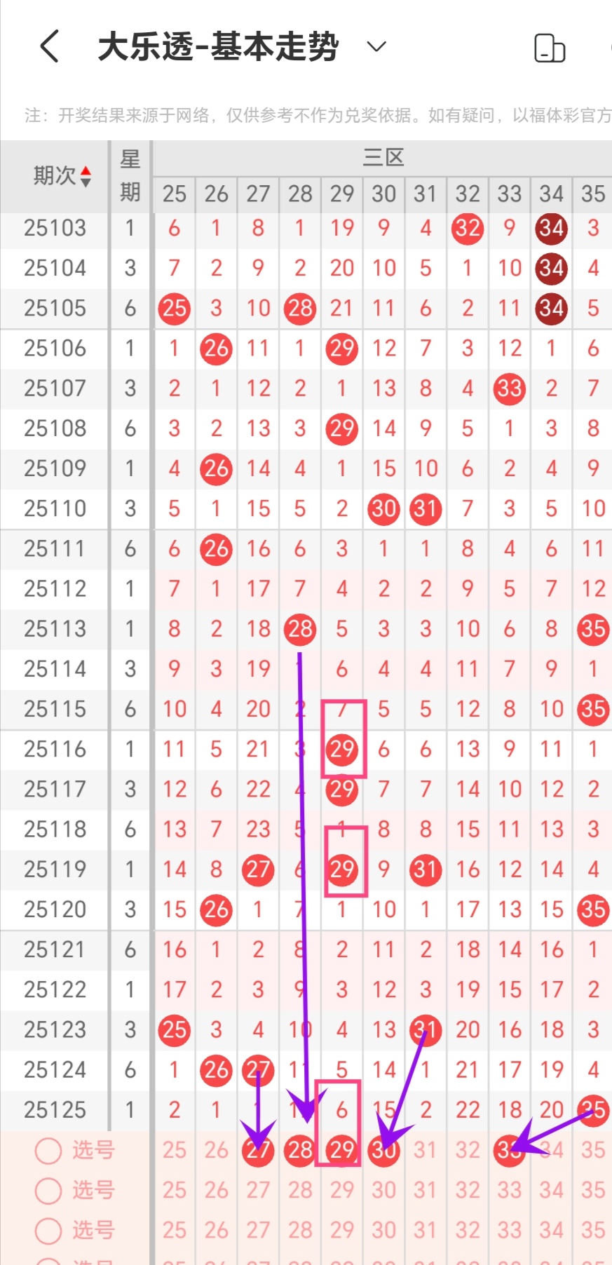 各位兄弟姐妹们大家好,我是nice,我喜欢研究数字的走势规律以及数据分析,通过同期次、同日期、同星期奖号等等出号规律进行杀号和做数据条件,红球杀号的准确率和稳定度都相当不错,首先通过上面的模块进行杀号可以做到杀红球12枚,然后将杀号带入到数据条件中进行选胆,这种方法屡试不爽帮助自己排除很多不必要的号码,将红球选号的数量控制在8-12枚,结合红球杀号带入到数据条件中选出的胆码,做胆拖组合控制成本