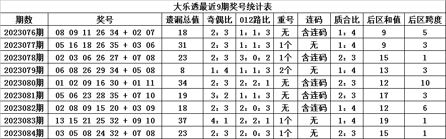 马姐大乐透第2023085期:前区防全合组合,后区注意重号