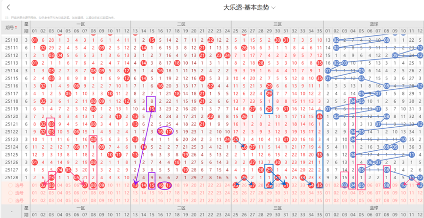 龙本龙-大乐透-第129期选号分析,重点关注一区和三区
