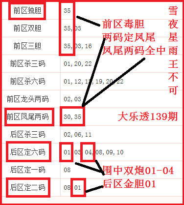 大乐透140期,上期前区毒胆,两码定凤尾,凤尾两码全中,后区金胆,围中双炮