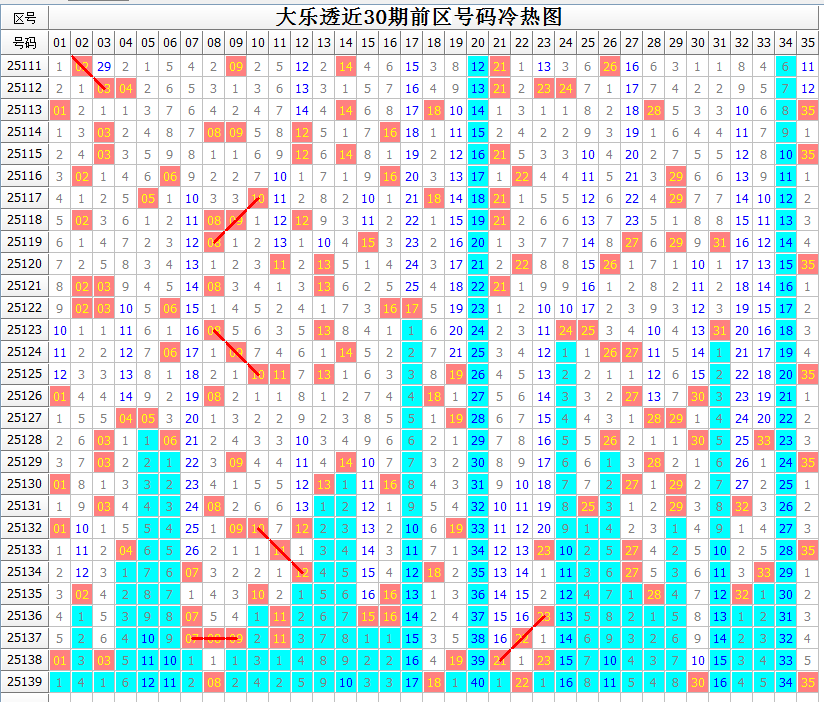 对前区大势的把握,少不了号码区间分布的情况。