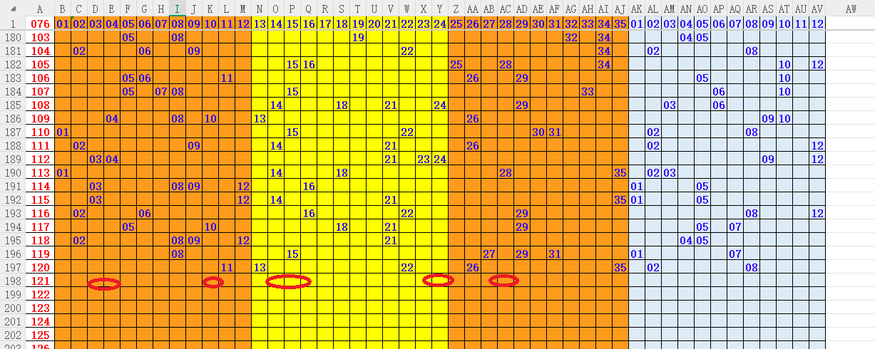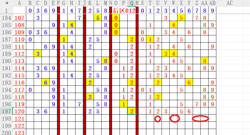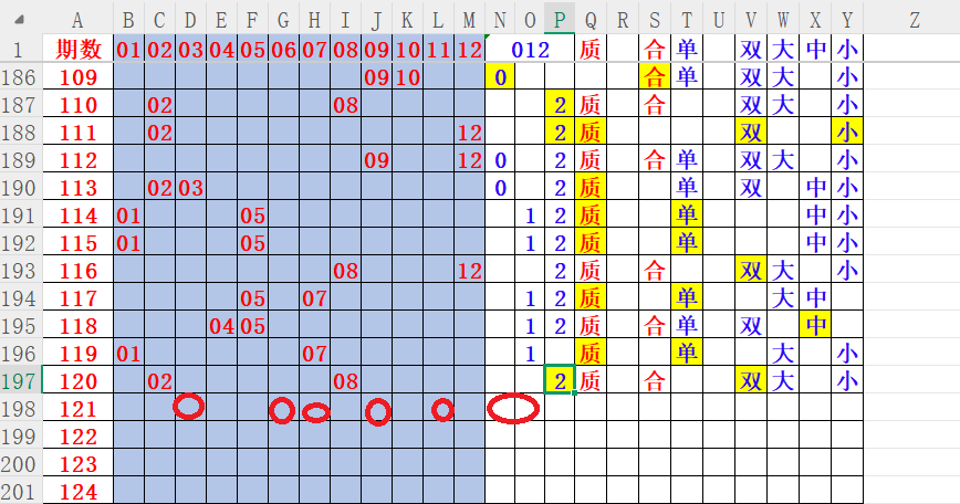 如上图4,012路分析012路,本期重点12路。重点 03 06 07 10 09