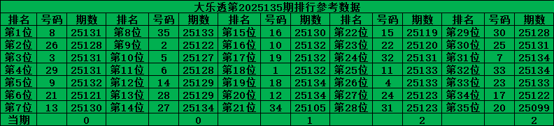 综上所诉超级大乐透第2025135期推荐号码: