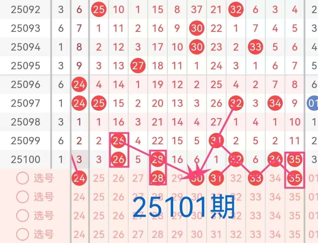 2. 凤尾号码分析:凤尾号码(前区最大号码)上期是35。这是一个最大的凤尾,过去十期内,凤尾号码多集中在18到35之间,其中3字头号码表现较为活跃。因此,本期应重点关注18-35区间的数字,特别是号码28、30、31、33