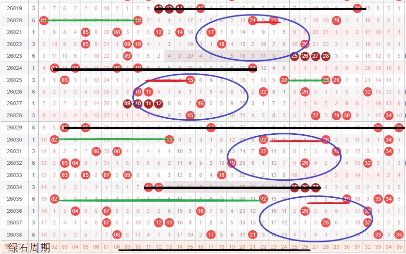 如图所示:体现的是3个局部走势的发展周期,圆圈为密集处的填空,本期定性为新局部走势第1期,画线期,架构填空第3期,号码密集在小号,上个蛋跨补号。