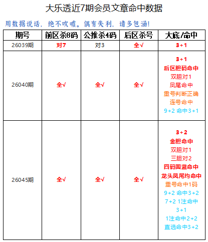 上期和值范围正确,前区杀8码全对,公推杀4码全对,后区杀号全对。