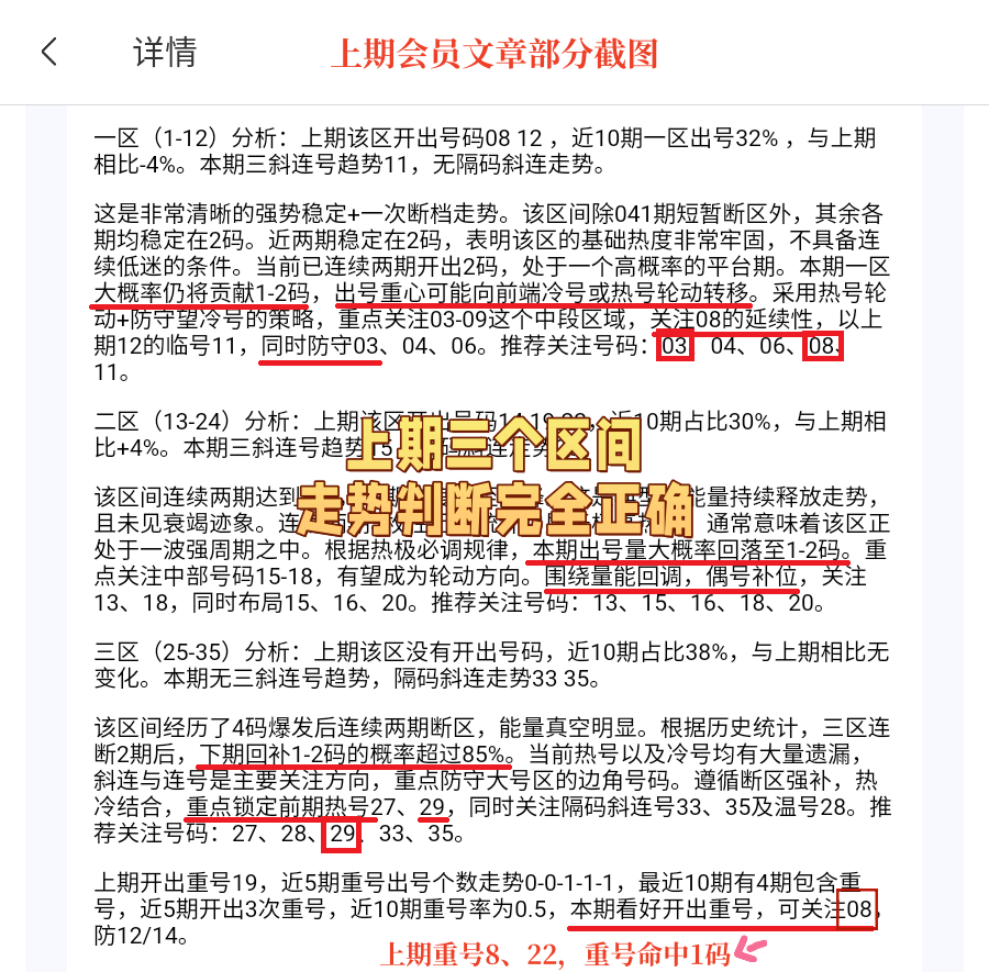 会员文章每个区间给出更详细的分析,说明整体走势的最新趋势,重号和连号均有推荐。