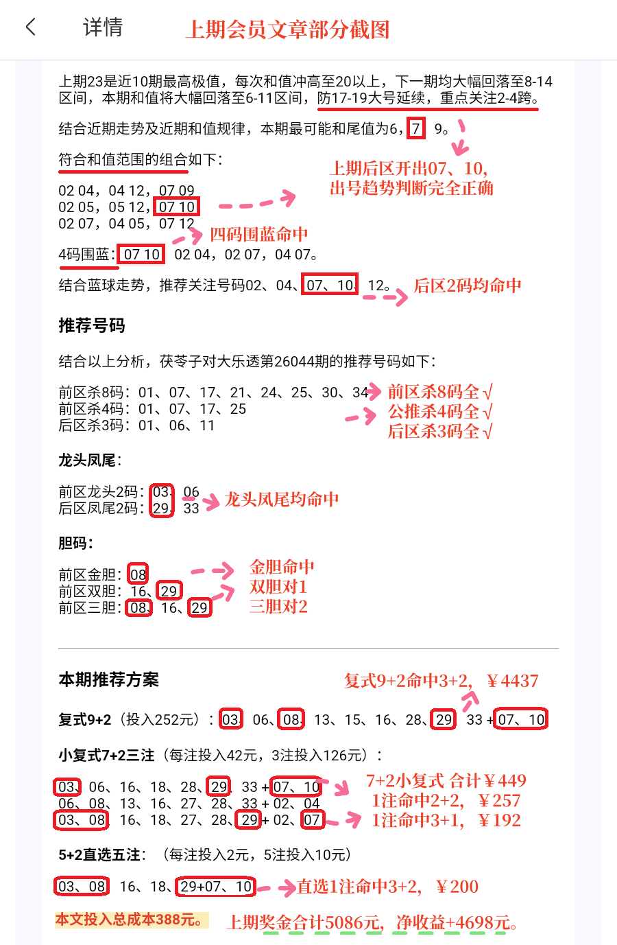 会员文章总投入388元,上期奖金4437+192+257+200=5086元,收益+4698元。