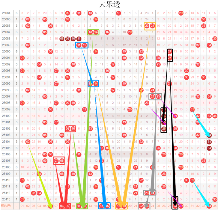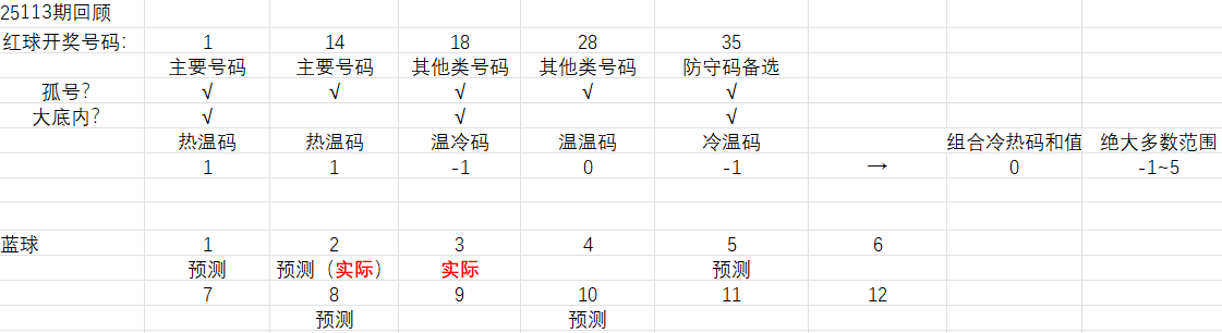 注意5个红球的组合冷温热码和值范围保持在-1~5
