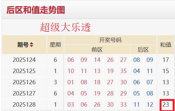 近五期大乐透开奖号码后区和值依次为17→15→13→13→23。后区和值均值为16。后区和值振幅为10,后区和值修正振幅为8。基于动态平衡干预以及波动趋势衡量,本期后区和值推测区间为8-24。基于风险对冲策略,本期后区和值区间缩水为13-23。