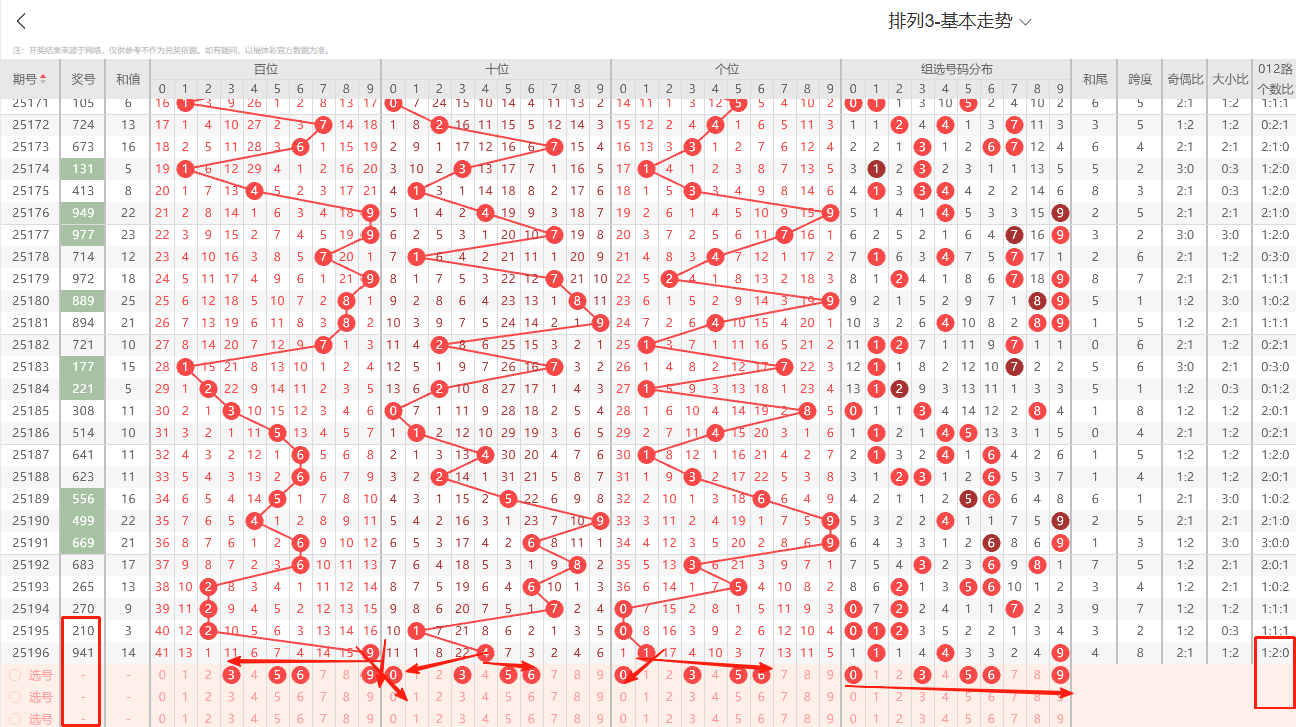 ①百位:上期开出大号奇数7号,在历史开奖记录中显示一般正常的奇偶周期平均在1~3期为普遍现象,奇数连续开出3期上期为1路号码,依据奇偶以及012路周期性规律的转变特征点即本期0路号码有开出的趋势1路号码注意预防。