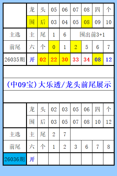 26035 期开奖号码为 02、22、30、33、34+08、12,前区呈现一奇四偶,后区开出全偶组合。