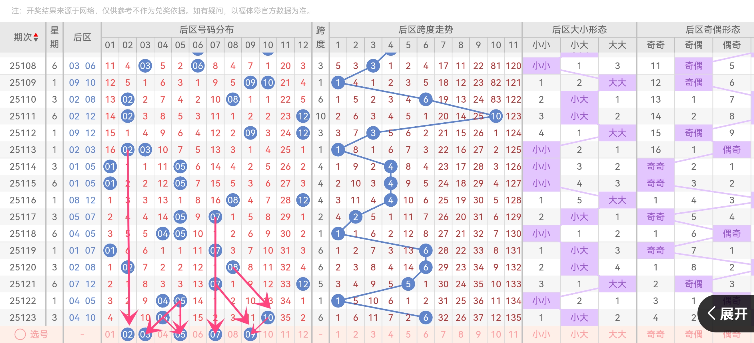 后区上期跨度6(04→10),近10期跨均值4.3。本期倾向小跨度组合→ 重点02-05、07-09区域 。