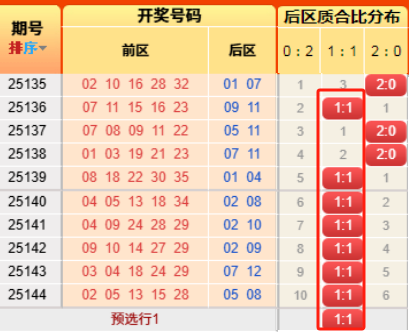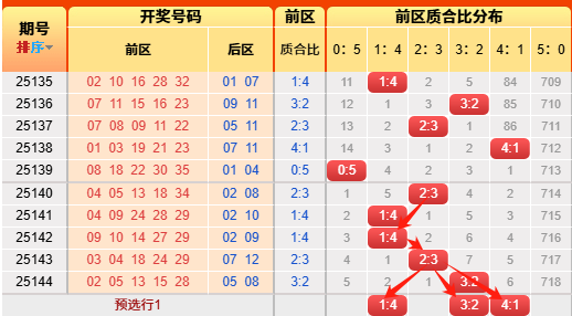 上期质合3:2,近53期命中50期范围。来看历史次数统计05出现270次、14出现908次、23出现1012次、32出现514次、41出现101次、50出现7次,再看近十期质合比出现的次数比1:33210,冷值50暂时放弃,再结合图形来看,本期趋势看顺路,初步选择为4:11:43:2具体请点击本条上车查看精选质合比