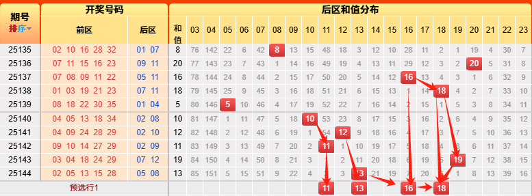接下来我们来看前区小大、奇偶、质合、和值分布图: