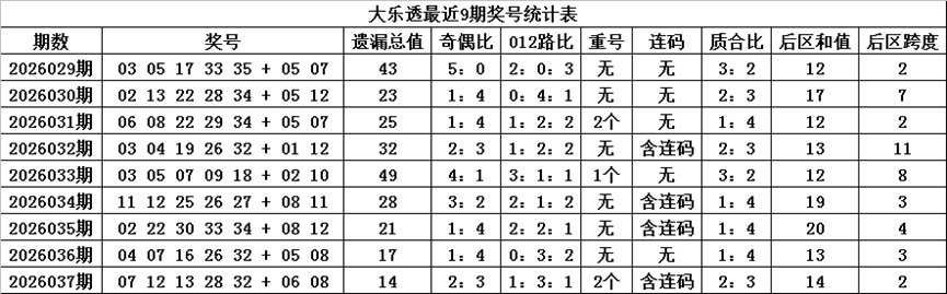 马姐大乐透第038期:连续两期后区两码全准,本期注意后区冷码解冻