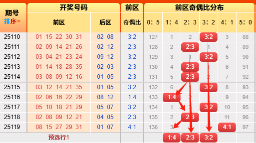 上期质合2:3,又命中啦,近39期命中38期范围。来看历史次数统计0:5出现268次、1:4出现901次、2:3出现1004次、3:2出现507次、4:1出现100次、5:0出现7次,再看近十期质合比出现的次数比0:5:5:0:0:0,冷值5:0暂时放弃,再结合图形来看,本期趋势看顺路,初步选择为3:2、1:4、2:3。(具体请点击本条上车查看精选质合比 )