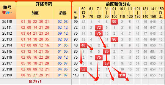 上期开出和值110。本次我们先根据历史次数统计,和值60以下开出244次、61-70开出234次、71-80开出367次,81-90开出479次、91-100开出491次,101-110开出378次、111-120开出312次、121-130开出155次、131-140开出90次、141-150开出26次、150以上开出9次,再来看近十次以上和值分别开出了2次、1次、3次、2次、2次、1次、0次、0次、0次、0次、0次 ,低于阈值的有60区间以下、61-70区间、81-90区间、91-100区间、101-110区间、121-130区间,再根据遗漏斜率对称理论,本期注意71-80区间、91-100区间、111-120区间。