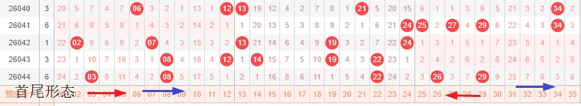 如图所示:首尾制约平衡组范围依次为:拉缩推,缩拉? 本期形态范围优先选择红色压缩首尾。由于上期号码处在间隔1分割2组的分割过程第2期分割完成形成形态,本期宜采取继续右推走形成形态,或体现多重或连号走势。