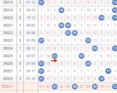 上图是体彩大乐透后区开奖号码走势分布图,我标志出来的数字都是0路球数字03 06 09 12这4个数字已经连续遗漏了3期,那么本期可以关注0路球数字出一个或者两个。
