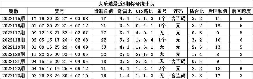 大乐透第2022124期:上期命中前、后区胆码,本期前区必出连码