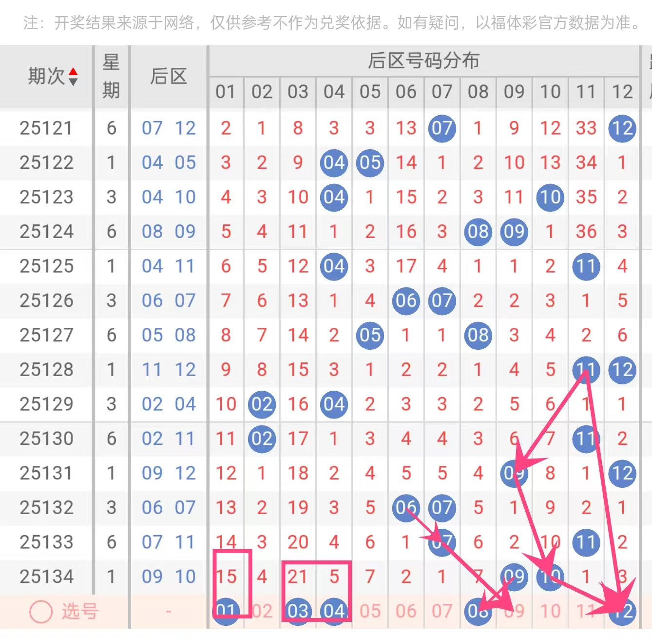 间隔与组合:后区号码01和03、04和08形成小间隔组合,12作为大冷号可能弹出。历史数据显示,后区冷号常伴随温号出现,因此组合01-04、03-08、04-12等具有覆盖性。