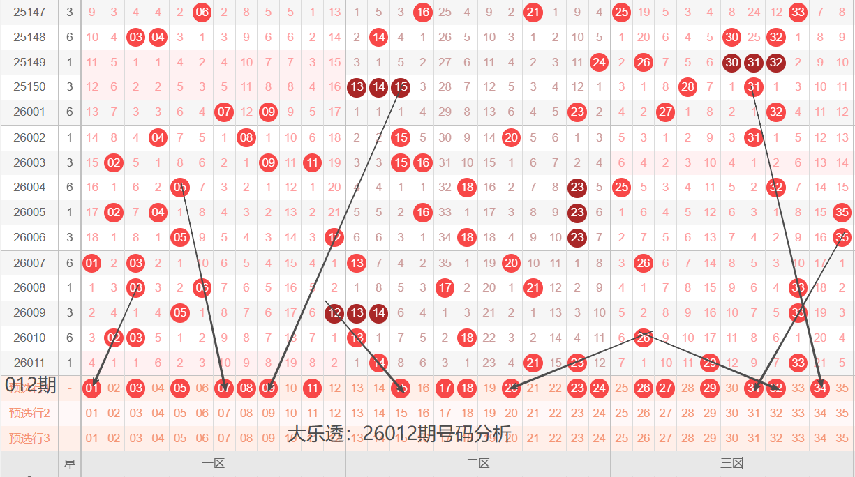 大乐透:26012期落位分析(26年好运连连)